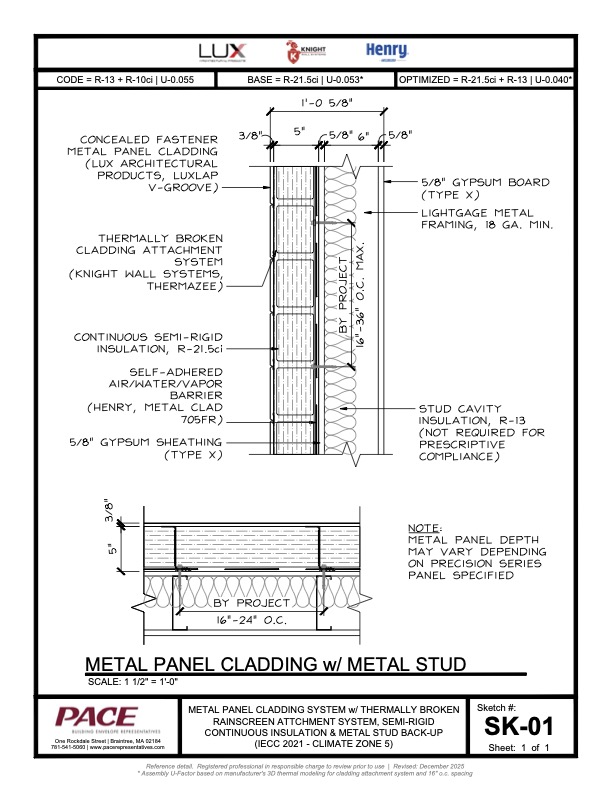 | Metal Framed | R-13+ R-10ci | U-0.055 | R-21.5ci | U-0.053** | R-13+ R-21.5ci | U-0.040** |