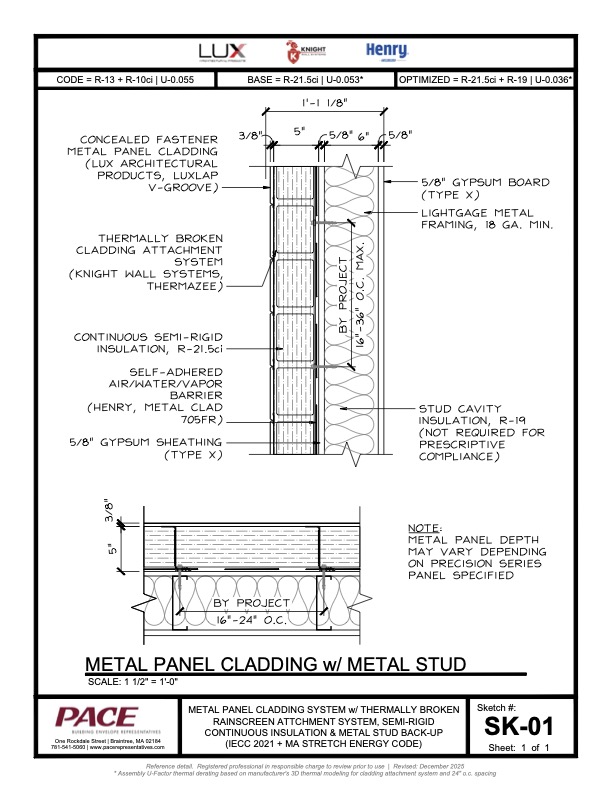 | Semi-Rigid Continuous Insulation – IECC 2021 + MA Stretch Energy Code (Climate Zone 5, All Other Use) | ||||||