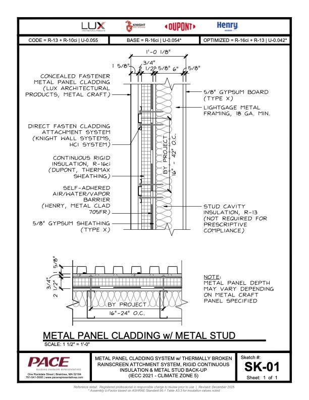 | Metal Framed | R-13+ R-10ci | U-0.055 | R-16ci | U-0.054 | R-13+ R-16ci | U-0.042 |